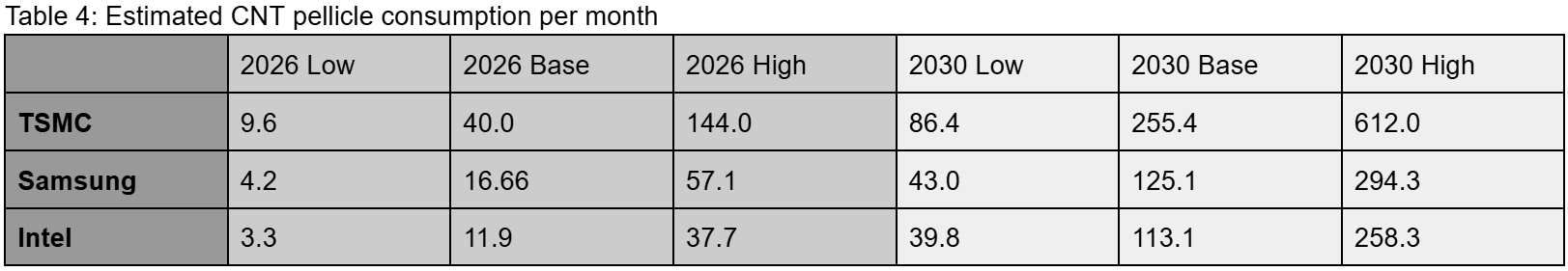 Nevertheless, we can work with general and defensible estimates based on semiconductor industry practices, and the pellicle demand modeling we did earlier.
