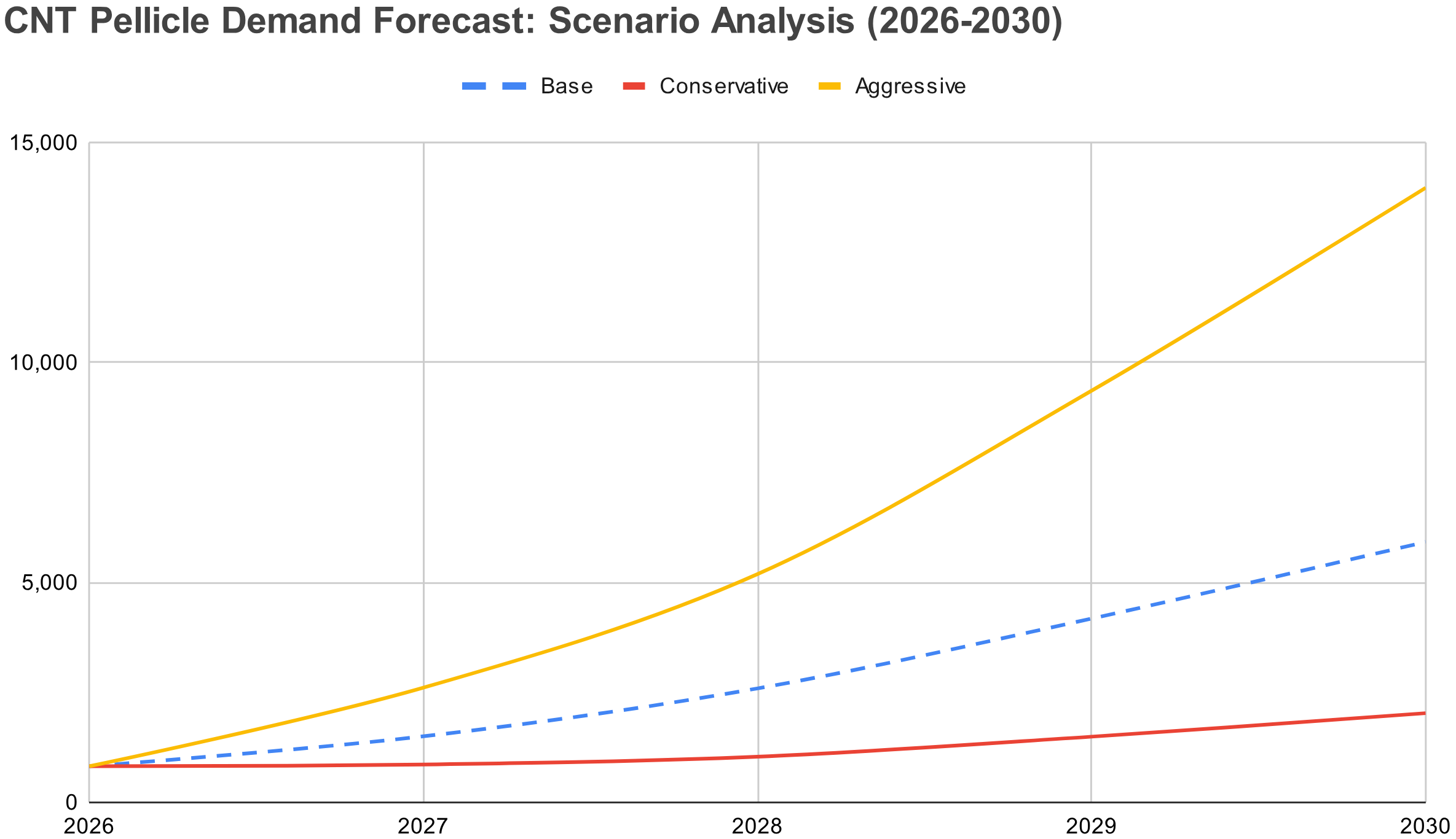 Significantly more attractive economics likely lie in the consumable materials necessary for pellicle production, where Canatu secures exclusive supply rights for its reactors and where we can realistically expect margins exceeding 60%.