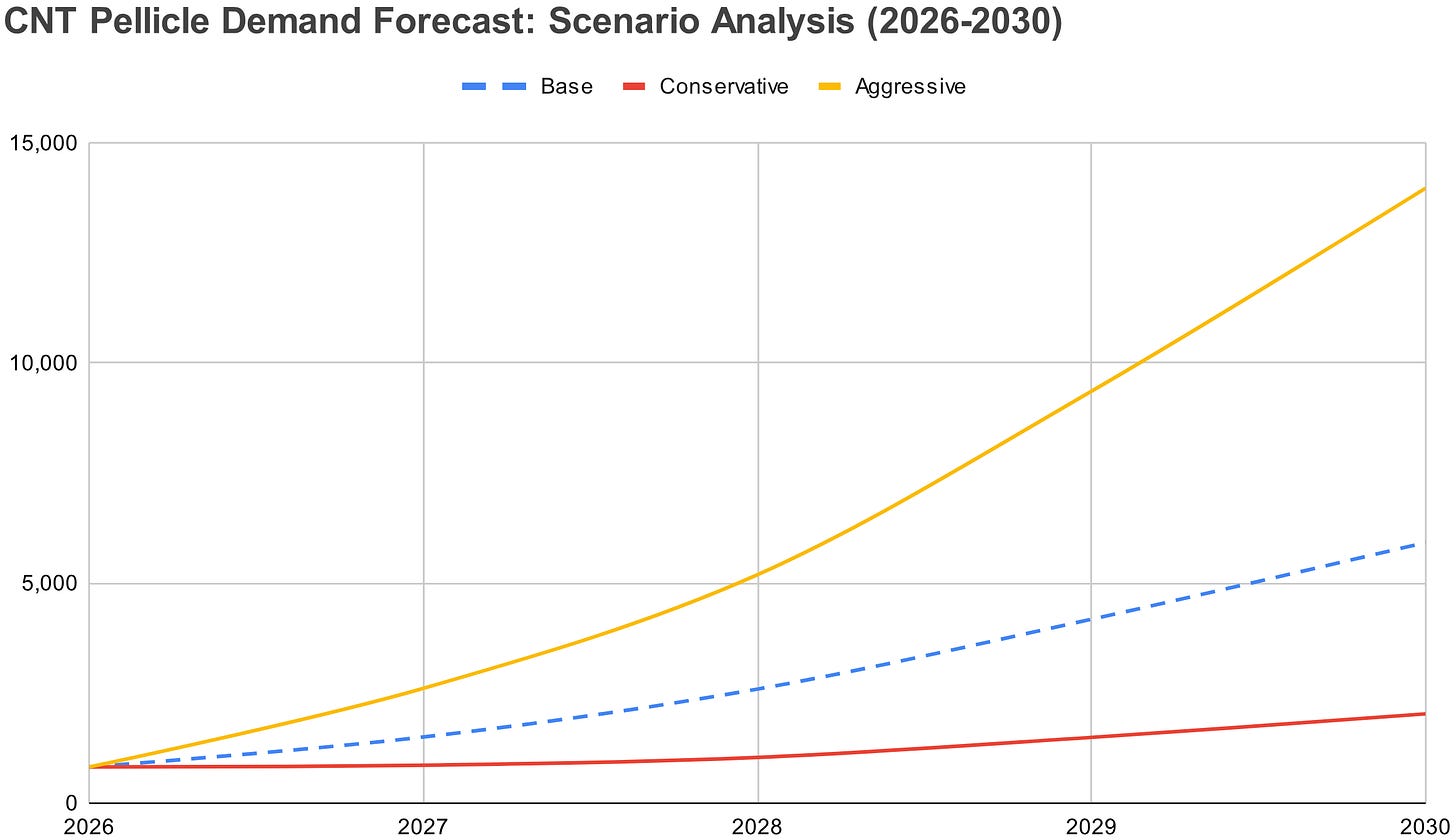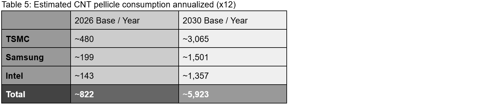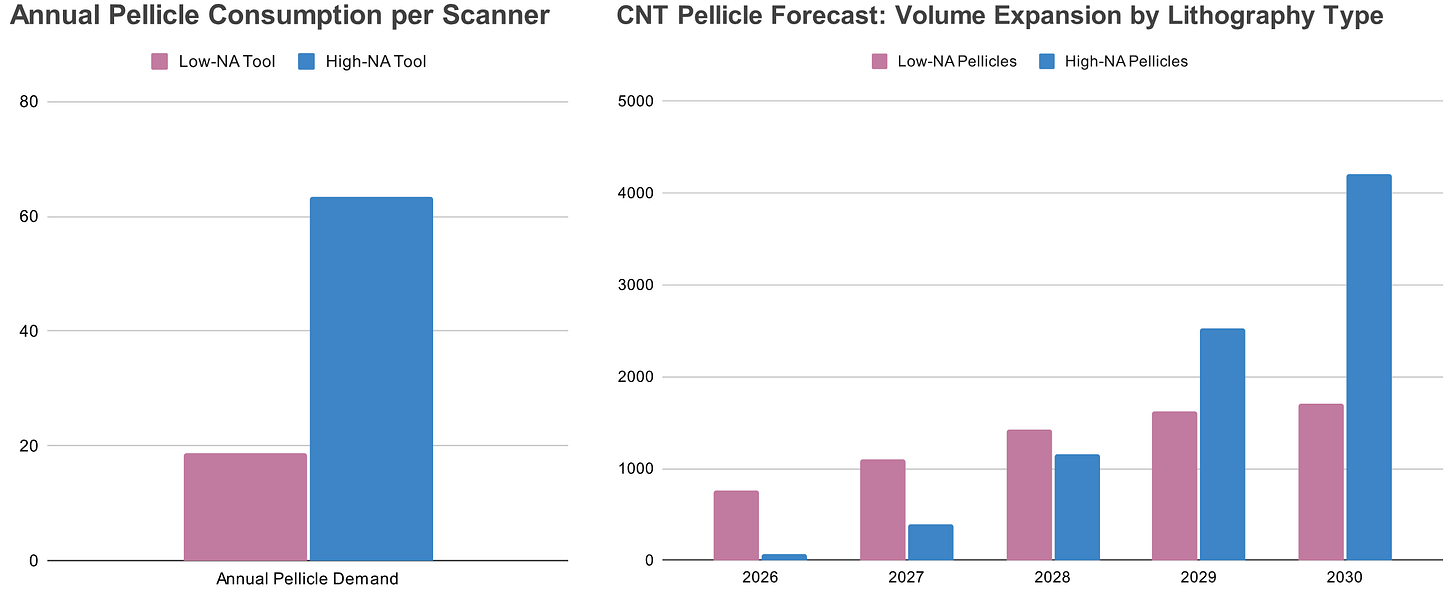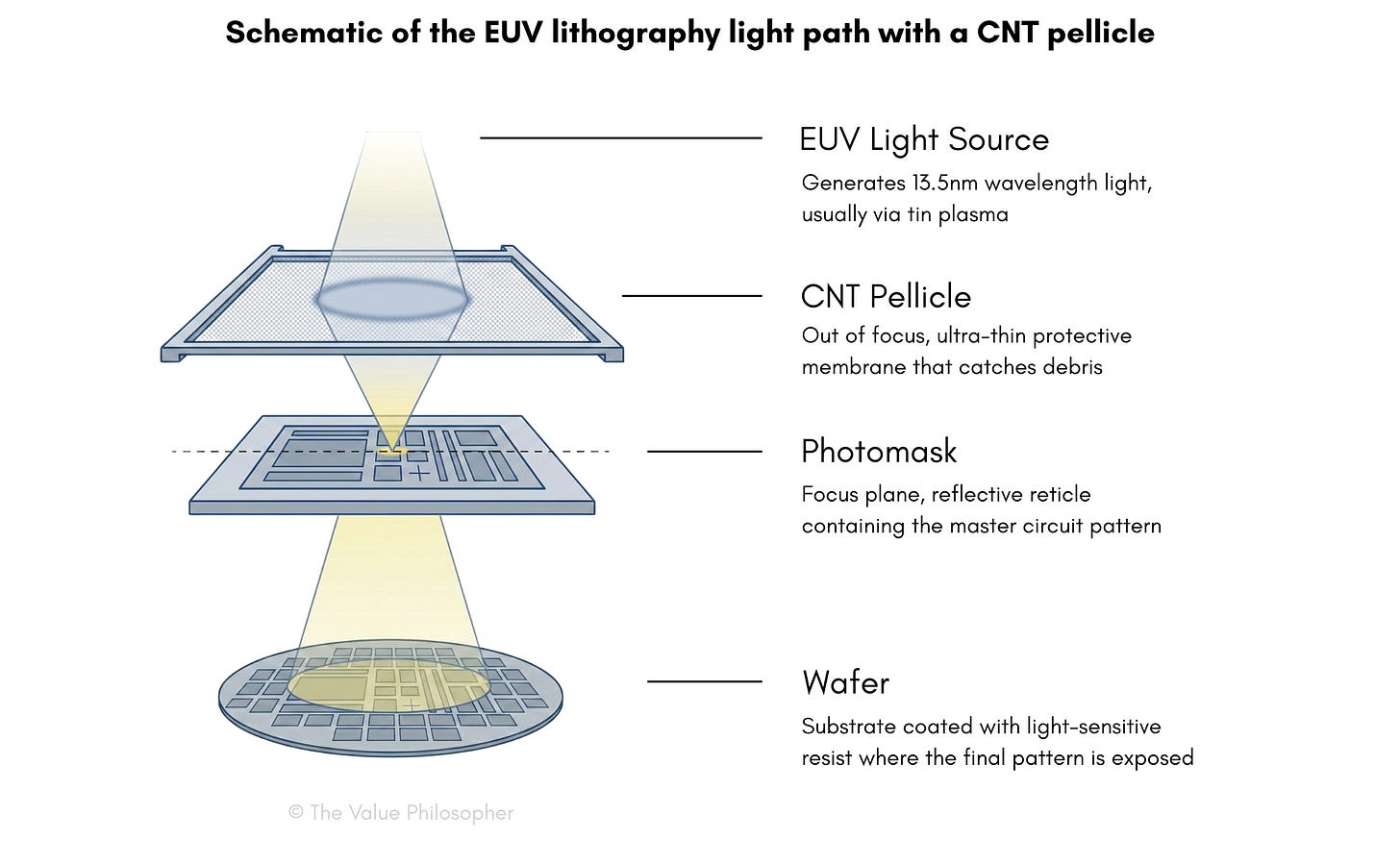 Subsequently, in May 2024, the company announced the construction of a manufacturing plant for the mass production of CNT pellicles at its Iwakuni-Ohtake Works in Japan, with a planned capacity of approximately 5,000 units annually and a launch targeted around the end of 2025.