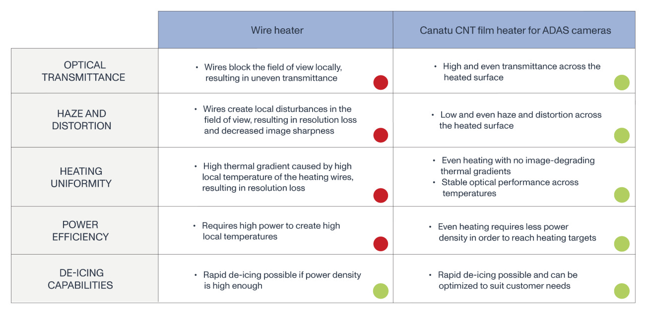 Similarly, in electromobility and autonomous driving, the main limit is not software, but the physical reliability of sensors and energy efficiency. The cleanliness of optical systems, instant functionality under all conditions, and the minimization of energy losses are problems that cannot be solved by an algorithm. Here, Canatu offers a material solution that meets both the regulatory and technical requirements of future vehicles.