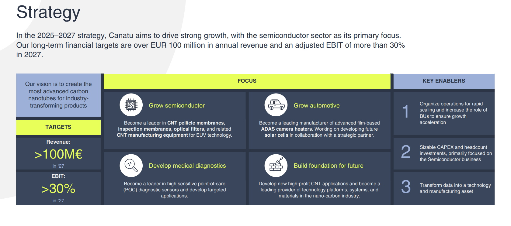 Investing in Canatu is not a wager on a single isolated product nor a short-term trend. It is exposure to a technology platform that systematically removes key bottlenecks in several of today’s most important structural trends.